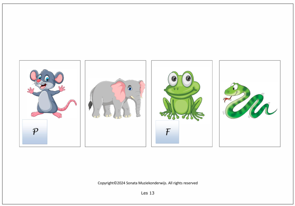 Het uitvoeren van deze 3 dynamieken op het klokkenspel wordt gekoppeld aan expressie en de articulatievormen staccato en glissando. De creativiteit van de kinderen wordt gestimuleerd door, met het uit beelden van emoties, muzikale beleving toe te voegen aan hun spel . Ook worden de kinderen uitgenodigd om eigen melodietjes te bedenken met het aangeboden speelmateriaal.